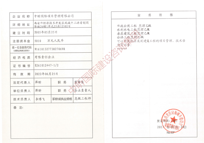 水利水电工程监理乙级